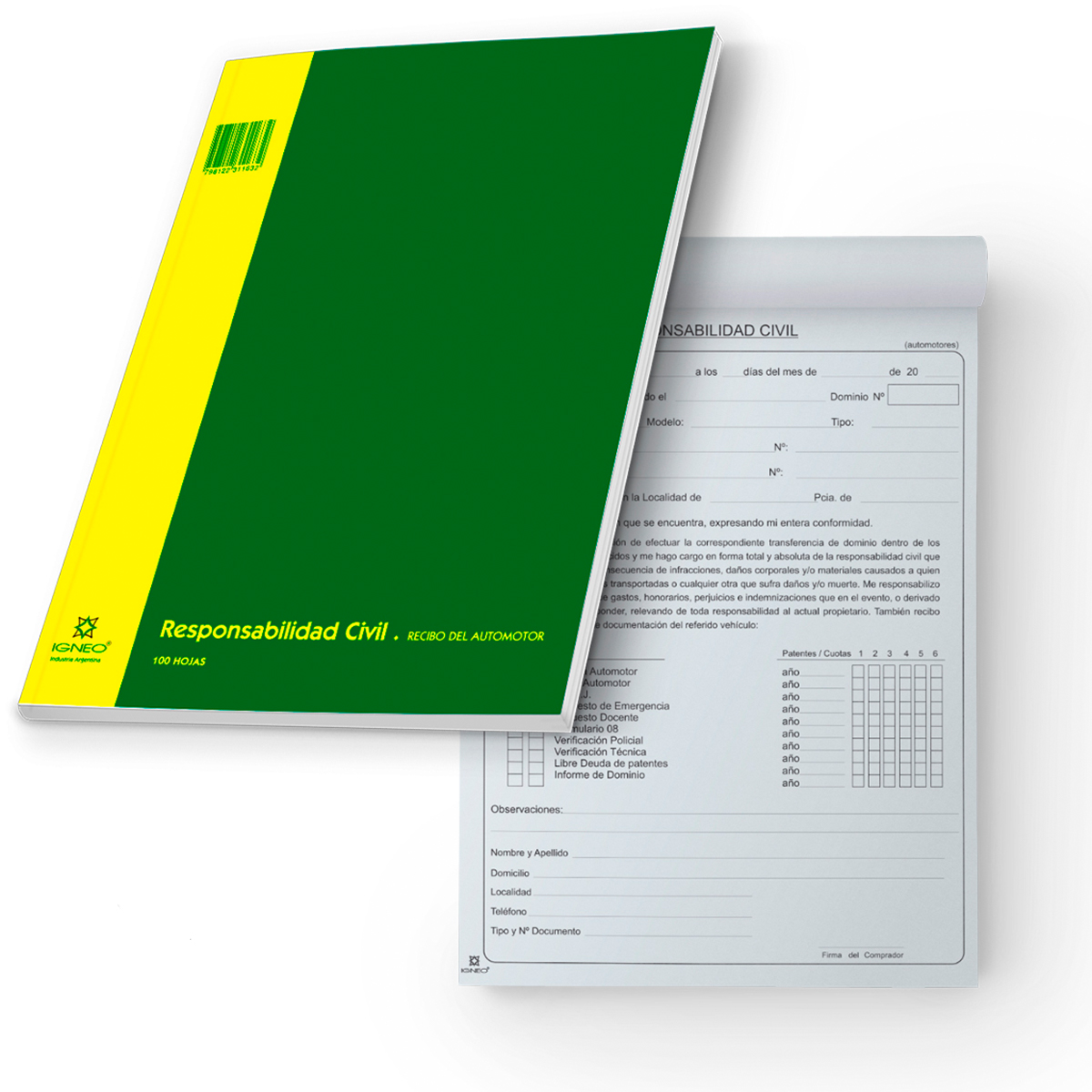 100 Hojas abrochadas.